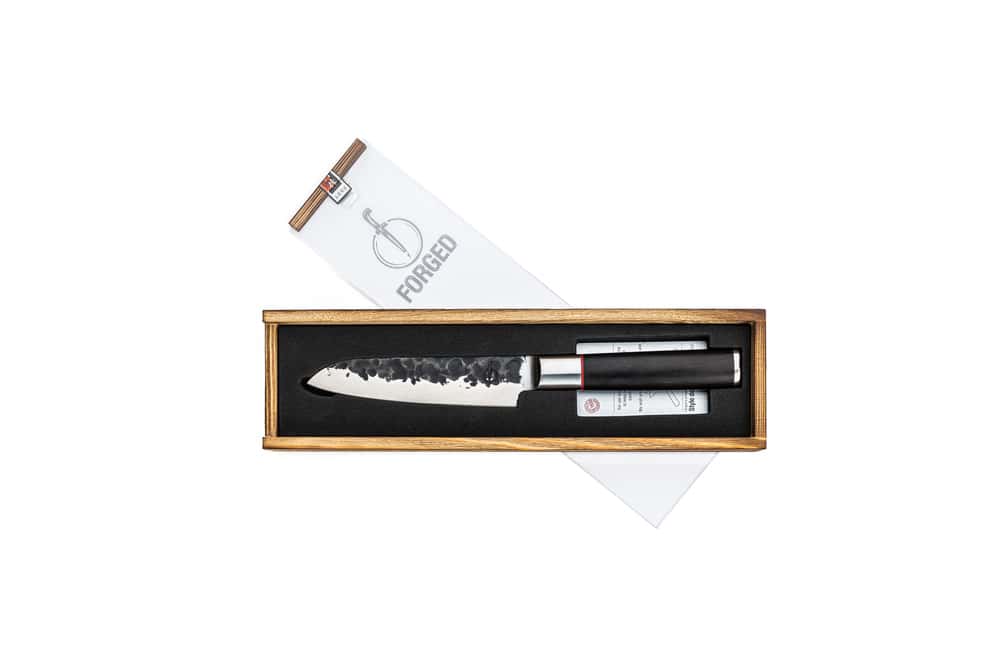 Het Forged Sebra Santokumes 14 cm is een stijlvol mes van pure ambacht. Een garantie van 10 jaar. Dit santokumes wordt verpakt in een luxe houten kistje.